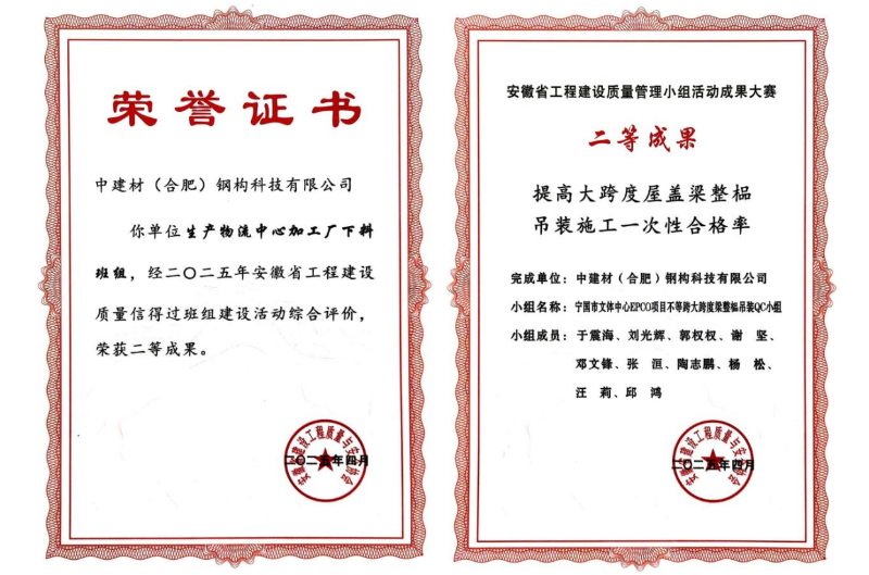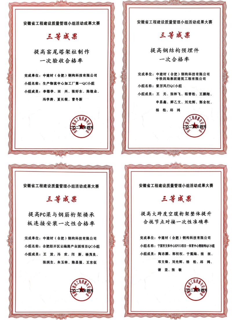 近日,在安徽省工程建設(shè)質(zhì)量管理小組活動成果大賽上,中建材鋼構(gòu)公司憑借扎實(shí)的技術(shù)功底、卓越的質(zhì)量管理水平和持續(xù)的創(chuàng)新精神,一舉斬獲10項(xiàng)優(yōu)秀成果大獎!其中包括2項(xiàng)二等獎、8項(xiàng)三等獎,獲獎數(shù)量和質(zhì)量均位居行業(yè)前列,充分展現(xiàn)了中建材鋼構(gòu)公司在工程建設(shè)領(lǐng)域強(qiáng)大的綜合實(shí)力和核心競爭力。