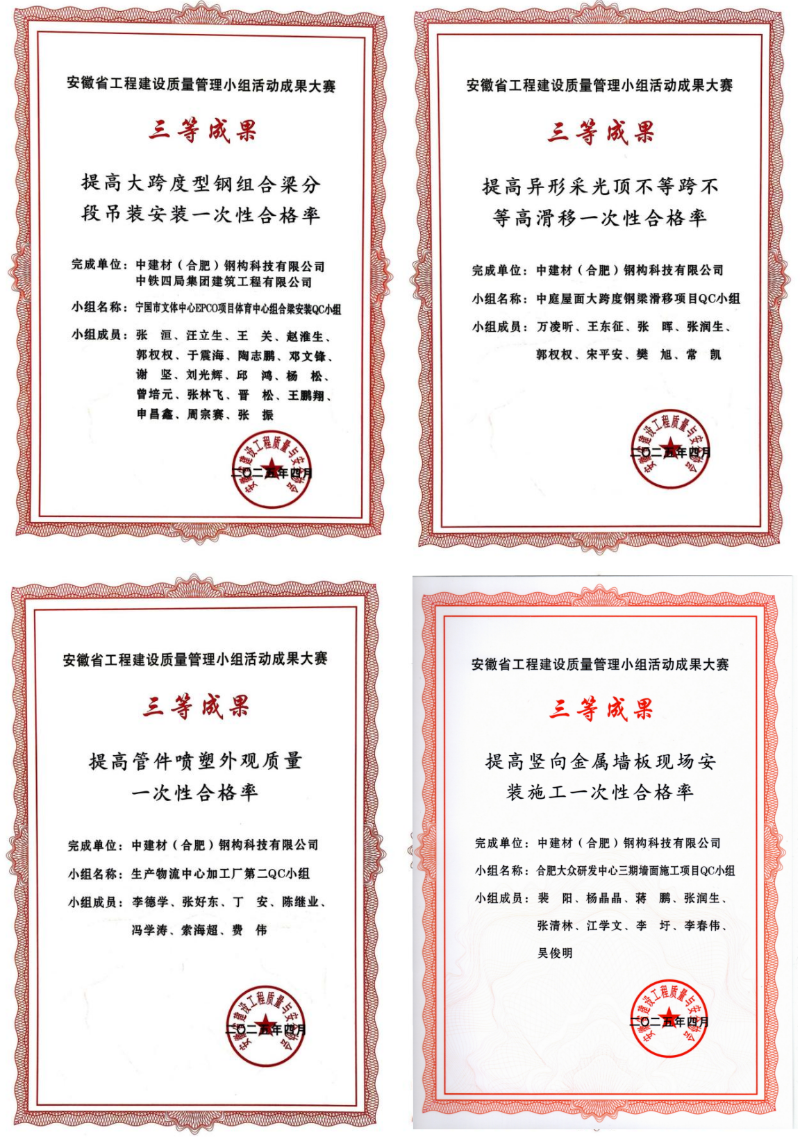本次在安徽省工程建設(shè)QC成果大賽中取得佳績,是對中建材鋼構(gòu)公司質(zhì)量管理與創(chuàng)新工作的肯定,也是激勵我們持續(xù)進(jìn)步的動力。這不僅提升了公司在工程建設(shè)領(lǐng)域的品牌影響力,也為參與更高級別市場競爭、承接重大項(xiàng)目增加了重要資質(zhì)。未來,公司將持續(xù)深化QC小組活動,加大研發(fā)投入,提升智能制造水平,完善質(zhì)量管理體系,將創(chuàng)新成果轉(zhuǎn)化為生產(chǎn)力,為客戶提供更優(yōu)質(zhì)、高效、綠色的鋼結(jié)構(gòu)產(chǎn)品與服務(wù),為工程建設(shè)行業(yè)的高質(zhì)量發(fā)展貢獻(xiàn)力量。